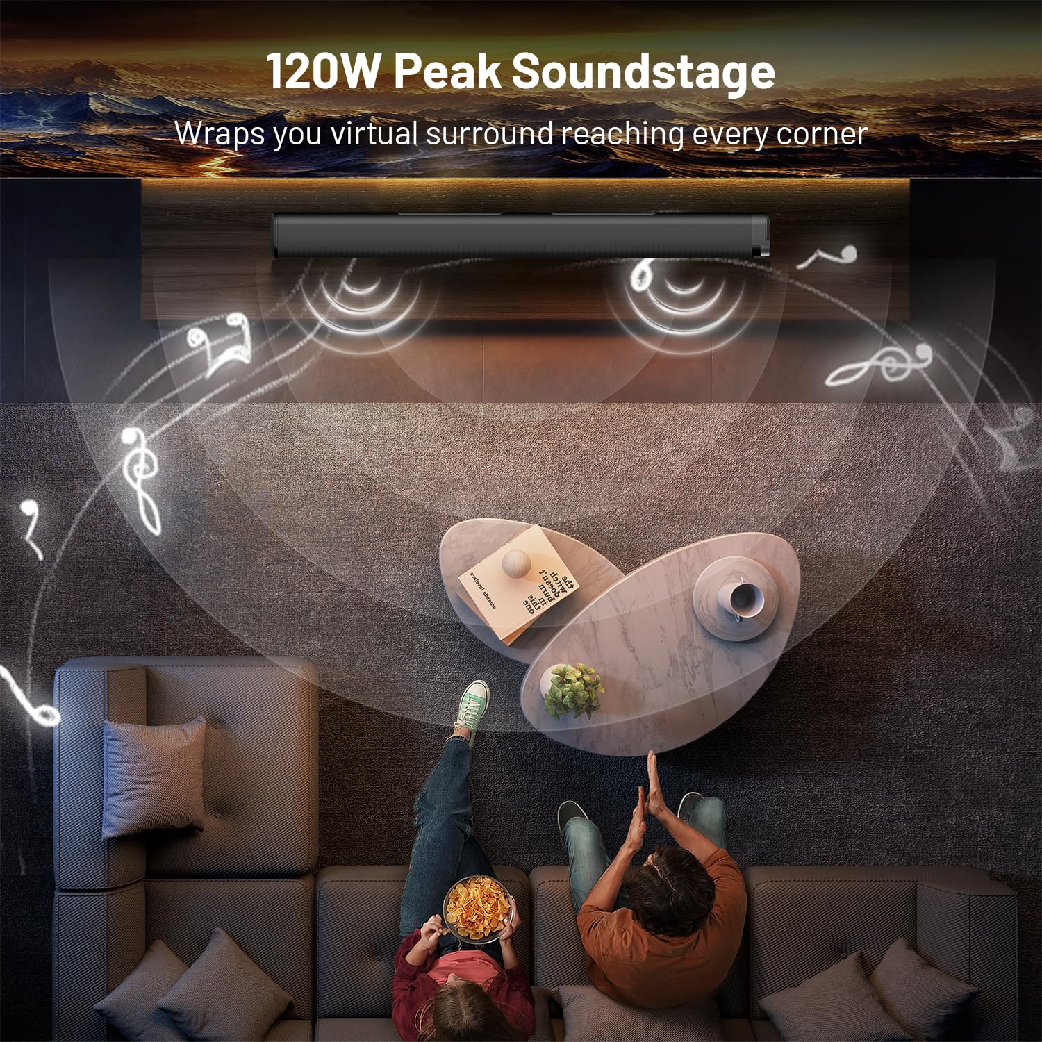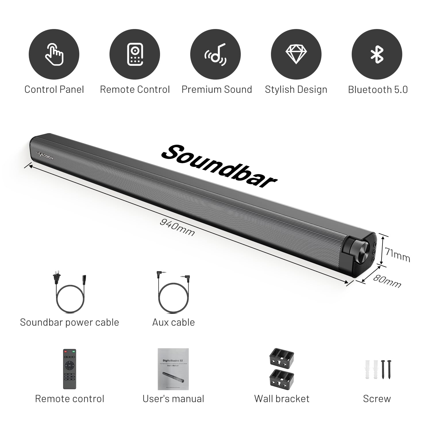 37inch TV Sound Bar, 100W Soundbar for TV with 60W BuiltIn Subwoofer