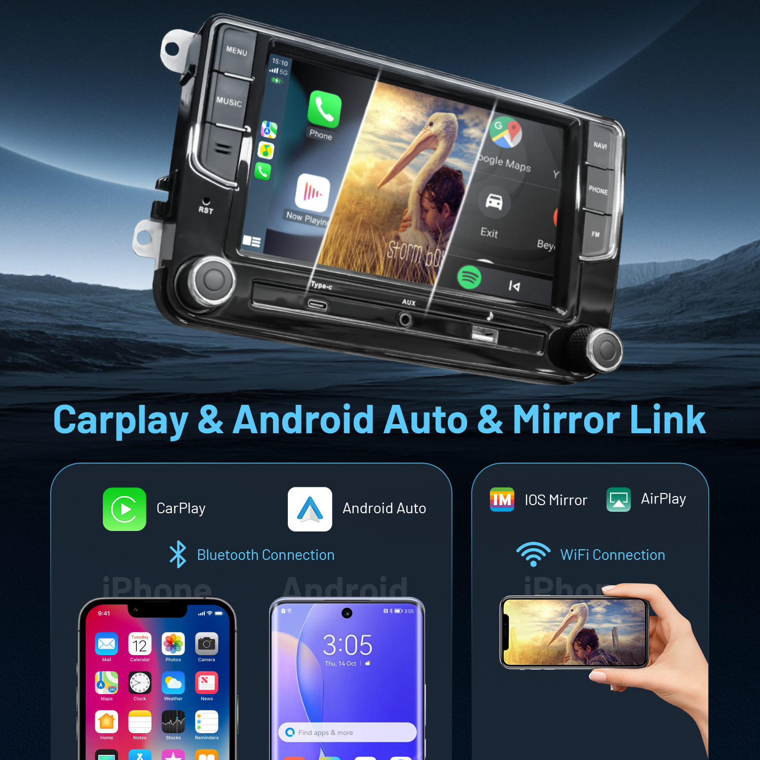 - ✅ WIRELESS APPLE CARPLAY & ANDROID AUTO:Effortlessly connect your smartphone wirelessly. Stream music, navigate with Google Maps/Waze, make calls, and access messages through your car’s display with intuitive voice commands. Enjoy a smarter, safer, and more connected driving experience without the hassle of cables. (Also supports wired connection for wider compatibility)