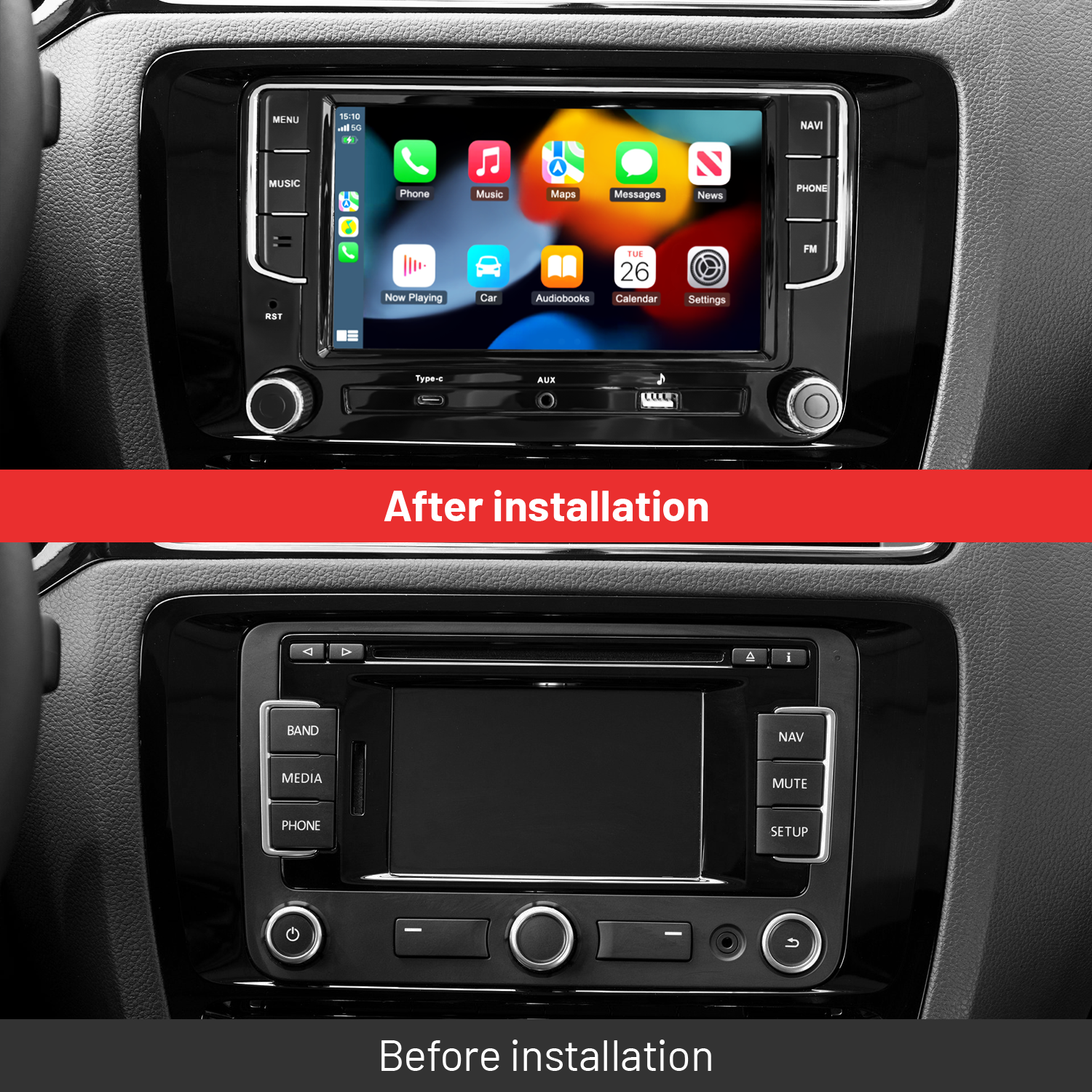 - ✅ PERFECT OEM FIT & PLUG-PLAY INSTALLATION:Designed exclusively for your Volkswagen (Golf, Passat, Jetta, Tiguan, etc.). This stereo seamlessly integrates into your dashboard, retaining the original screen size and ALL factory buttons. No cutting or modification needed. The innovative plug-and-play button panel ensures a flawless, factory-like look and feel, preserving your vehicle’s resale value and interior aesthetics